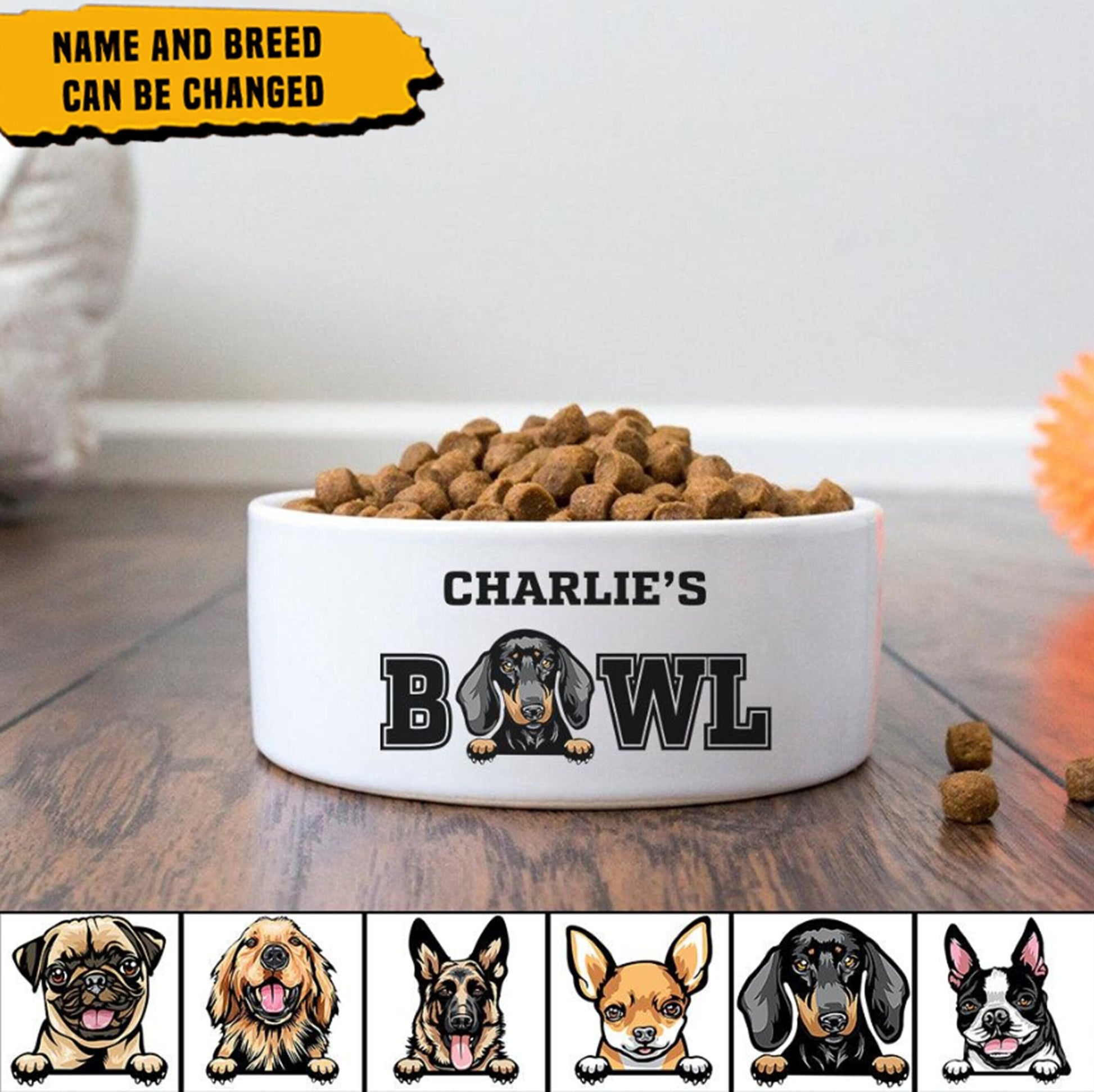 Custom Dog Bowls with Name & Breeds Design, Personalized Dog Bowl, New Dog Gift, Dog Food Bowl, Dog Water Bowl, Pet Bowl, Dog Lovers Gifts