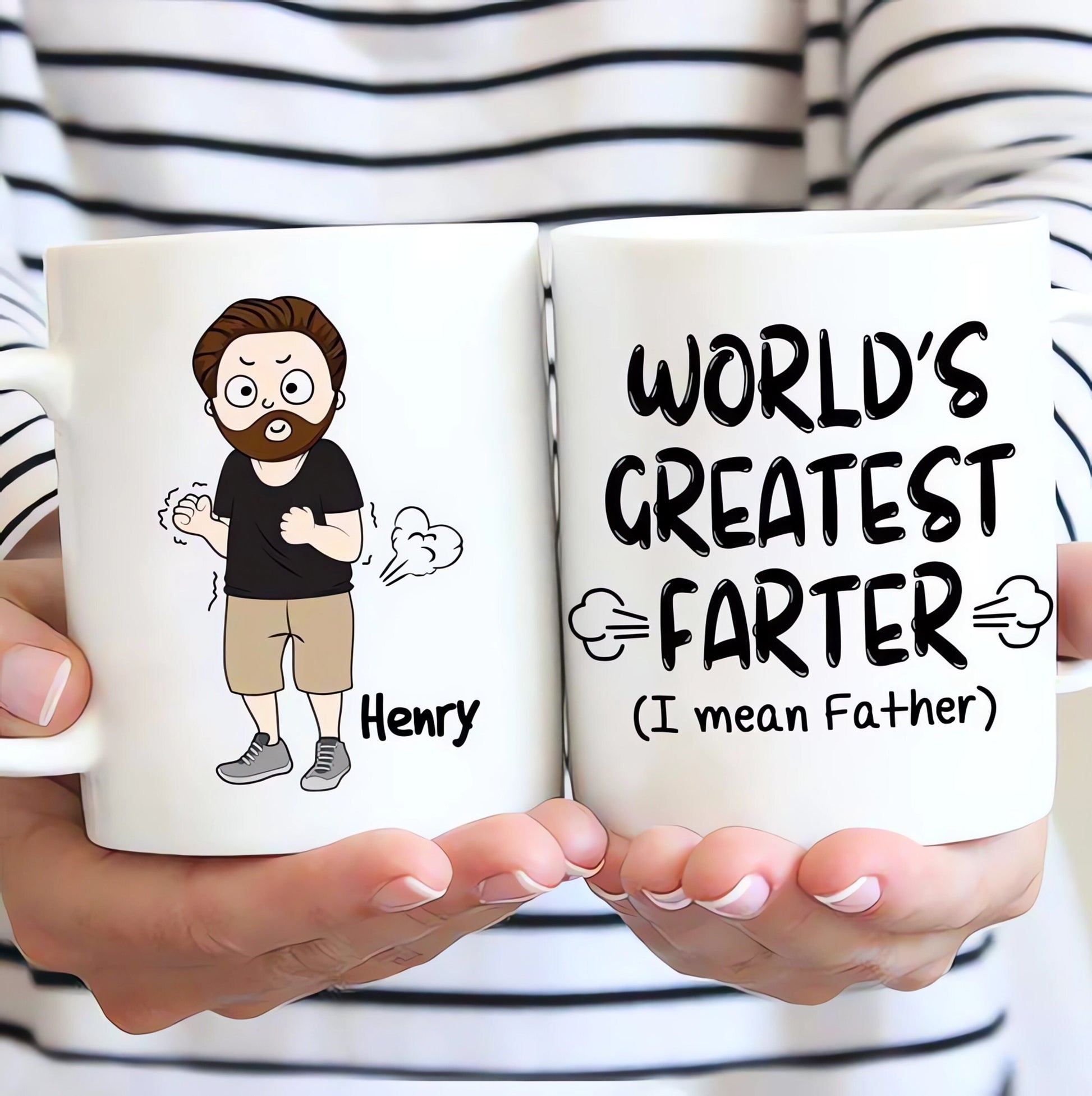 Funny World Greatest Father Personalized Coffee Mug, Dad Mug, Custom Daddy Mug, Dad Holiday Gift from Daughter Son Wife, Funny Gift for Dad