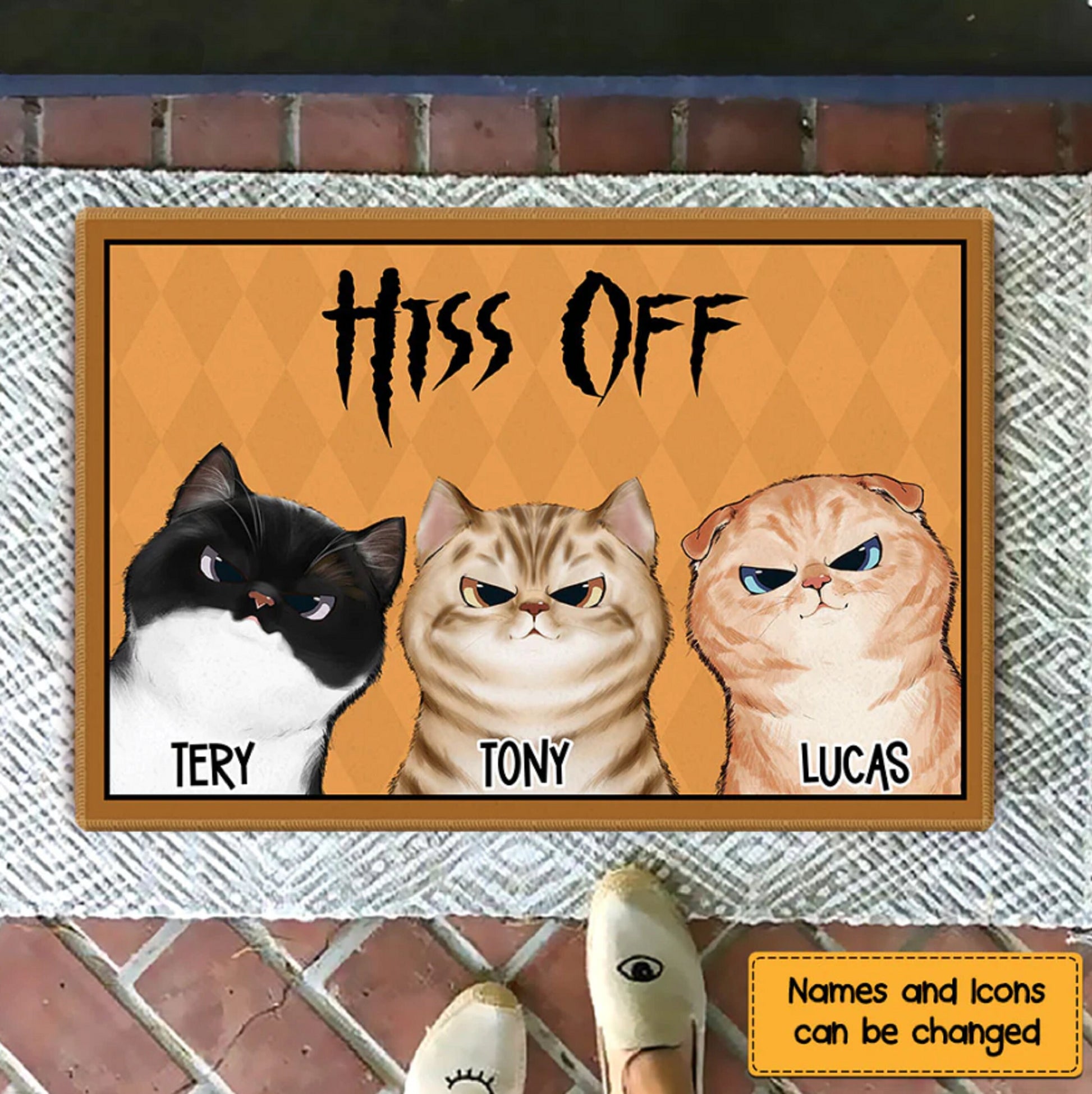 Hiss Off Grumpy Cats Personalized Doormat, Funny Welcome Mat, Cat Entrance Mat, Front Door Mat, Cat Mom Birthday Gift, Cute Cat Doormat