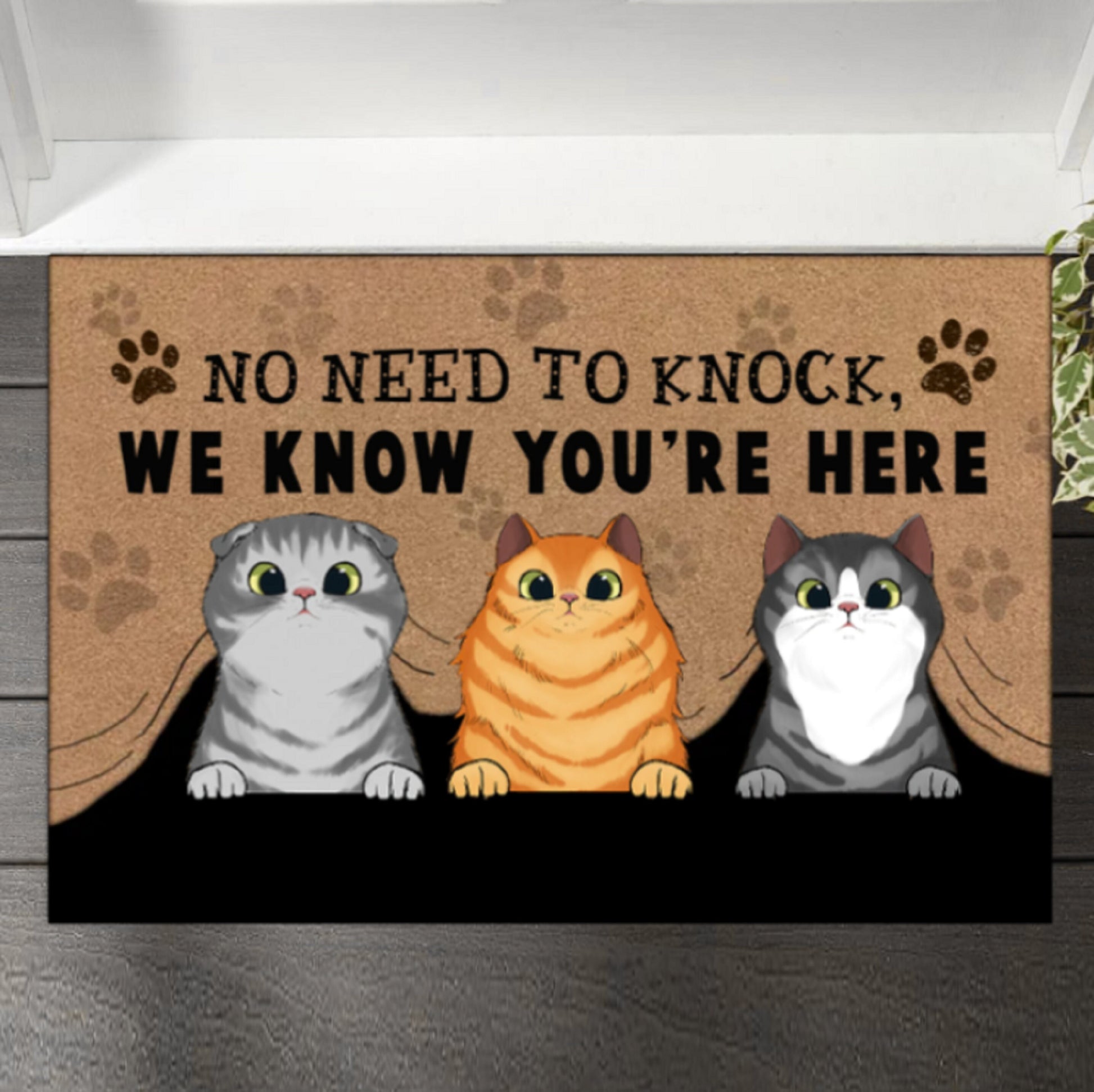 No Need To Knock We Know You Are Here, Personalized Cat Doormat, Funny Welcome Home Mat, Cat Entrance Mat, Welcome Mat, Housewarming Gift