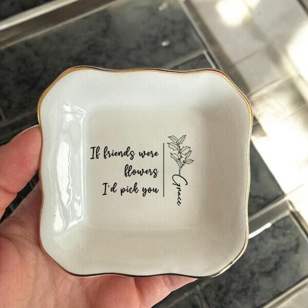 Personalized Friend Ring Dish, If Friends Were Flowers, I’d Pick You, Birth Month Flower Trinket Tray, Friend Birthday Gifts For Best Friend