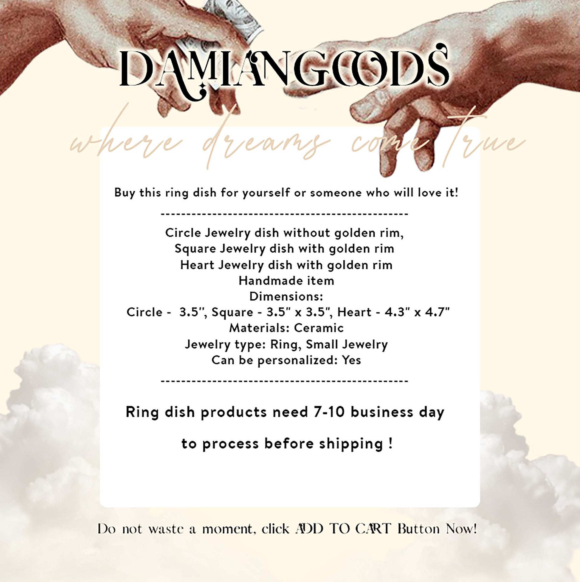 Trinket Tray - Circle Jewelry dish without golden rim, Square Jewelry dish with golden rim and Heart Jewelry dish with golden rim