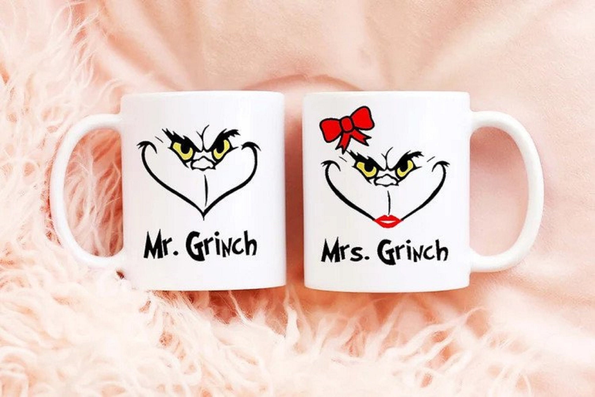 Personalized Mr Mrs Grinch Coffee Mug, Funny Mr Mrs Coffee Mug, Couple Grinch Coffee Mug, Christmas Coffee Mug Gift For Anniversary