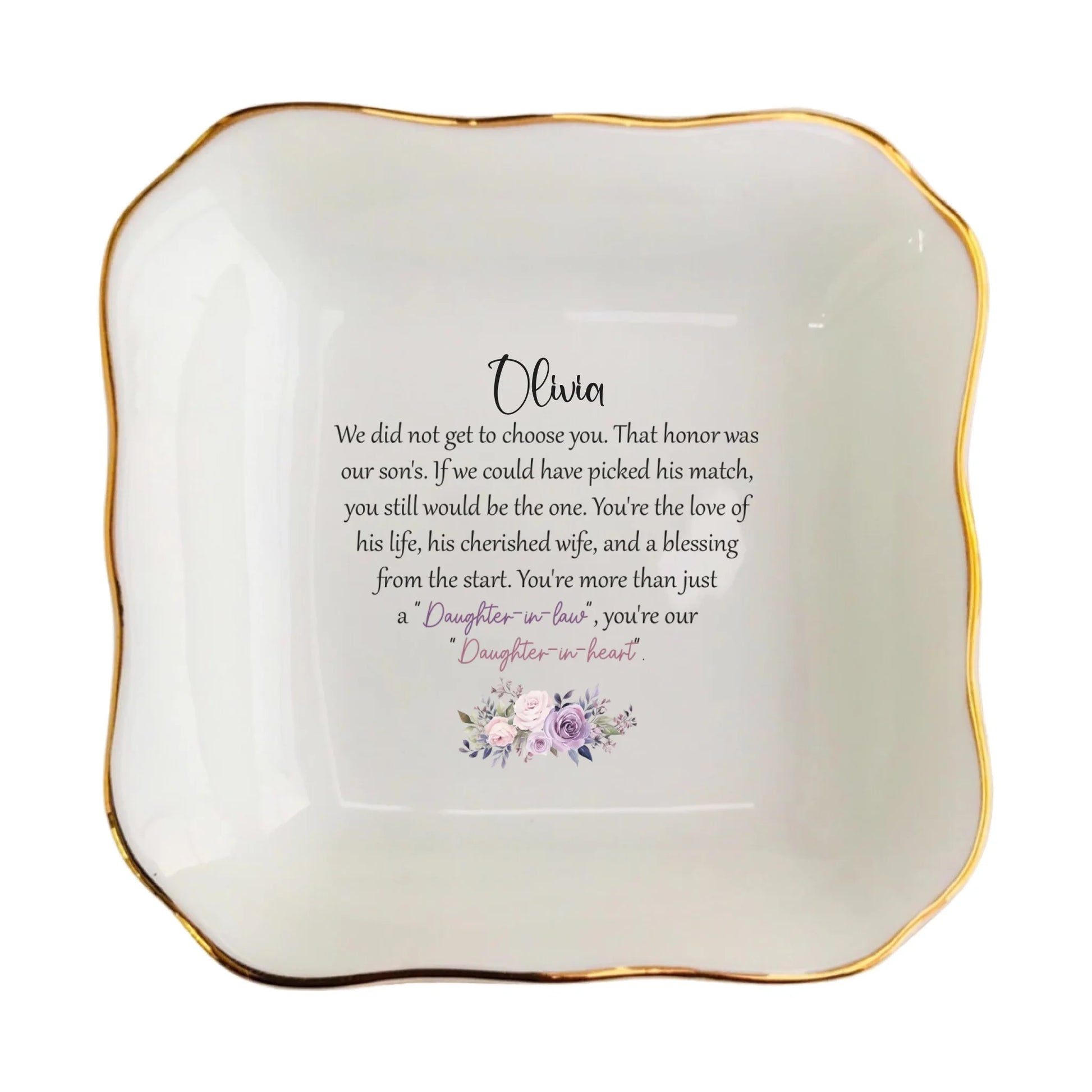 Daughter-in-Law Ring Dish | Jewelry Trinket Tray Keepsake - We did not get to choose you. That honor was our son's.