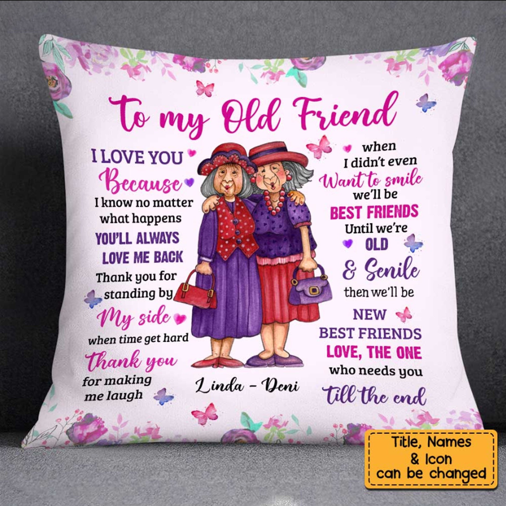To My Old Friend Sisters Bestie Personalized Pillow, Sisters Pillow, Best Friend Long Distance Gift, Custom State to State, Christmas Gift